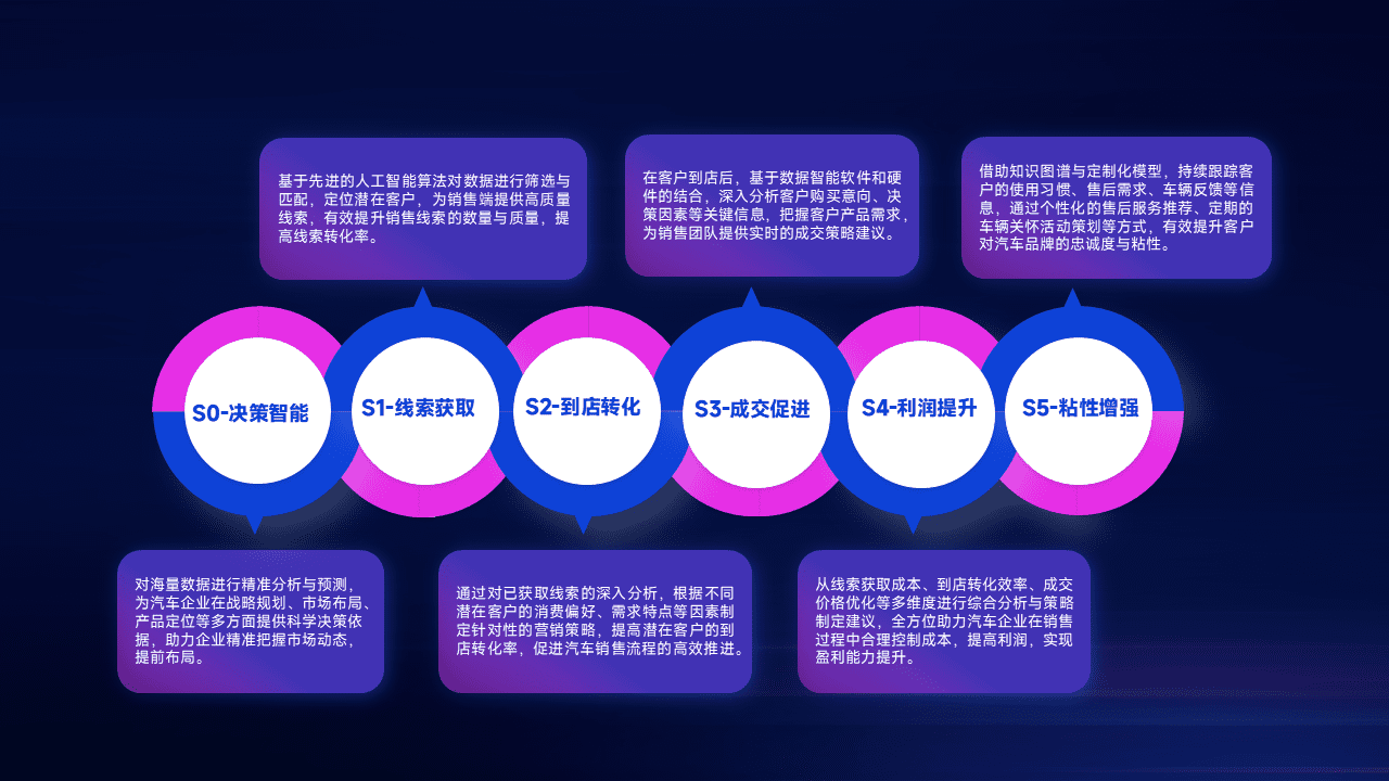通过拓宽潜在客户来源、、、、优化线索分配并提高到店转化率,,,以增强销售效率。。。。同时,,利用线索数据不断优化分析模型,,有效提升转化率,,扩大营销影响力。。。